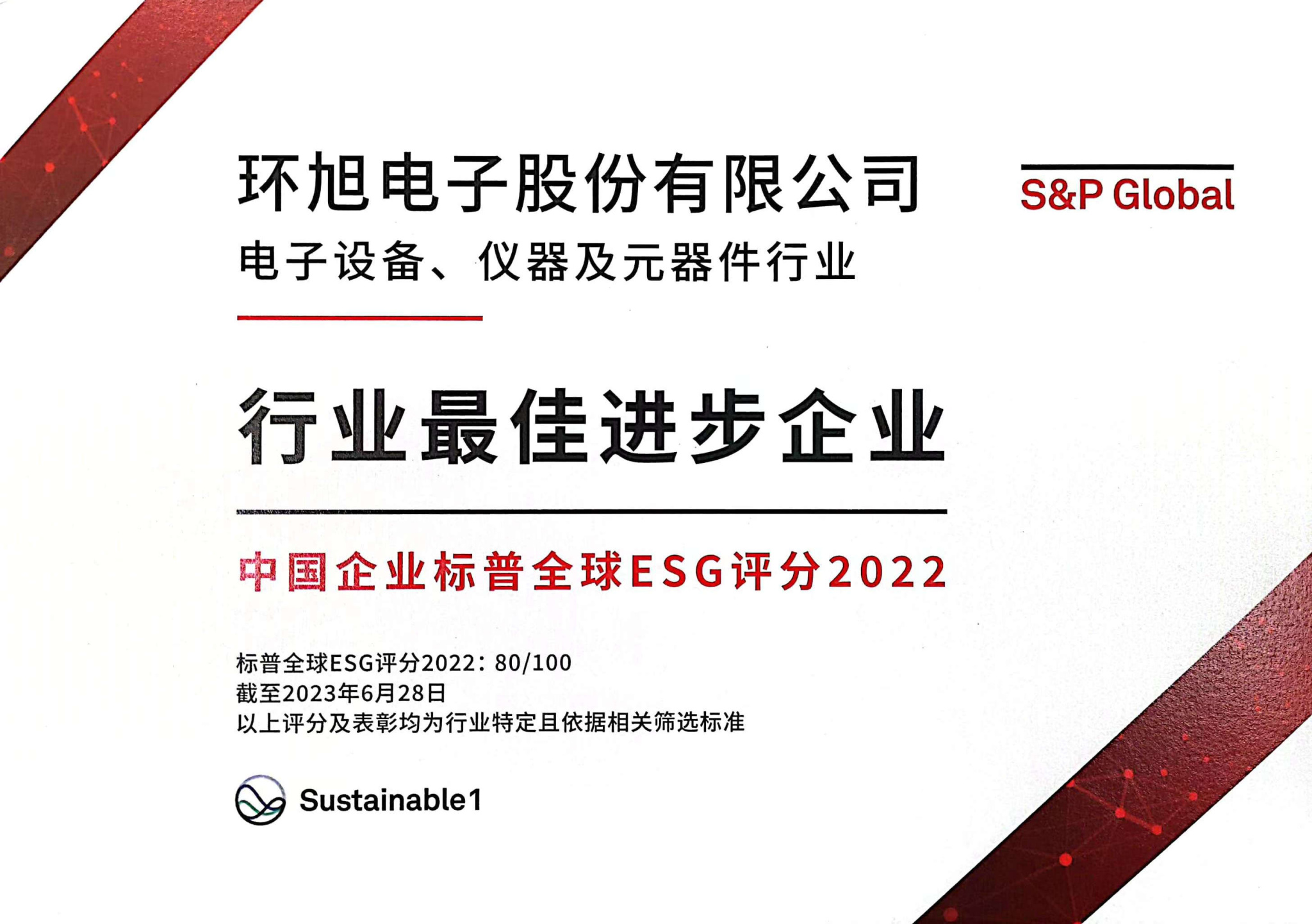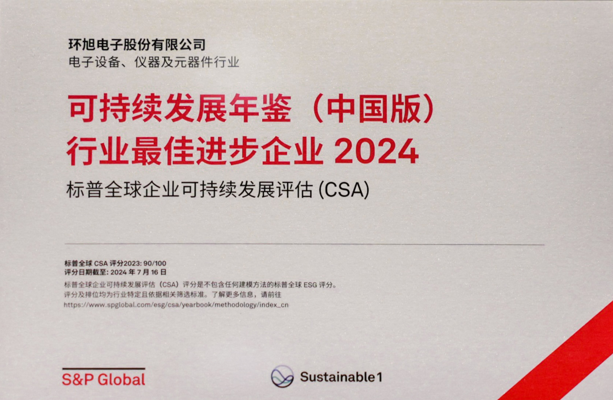 2024 标普全球中国企业 ESG 评分最佳1%
