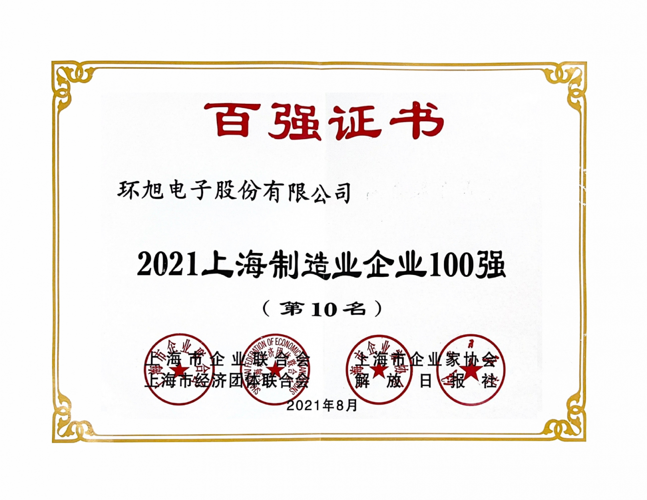 2021上海制造业企业100强(第10名)