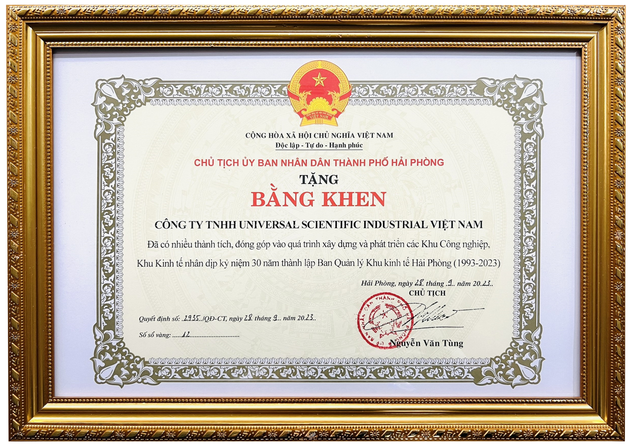 海防工业园区建设发展杰出贡献奖 (越南厂)