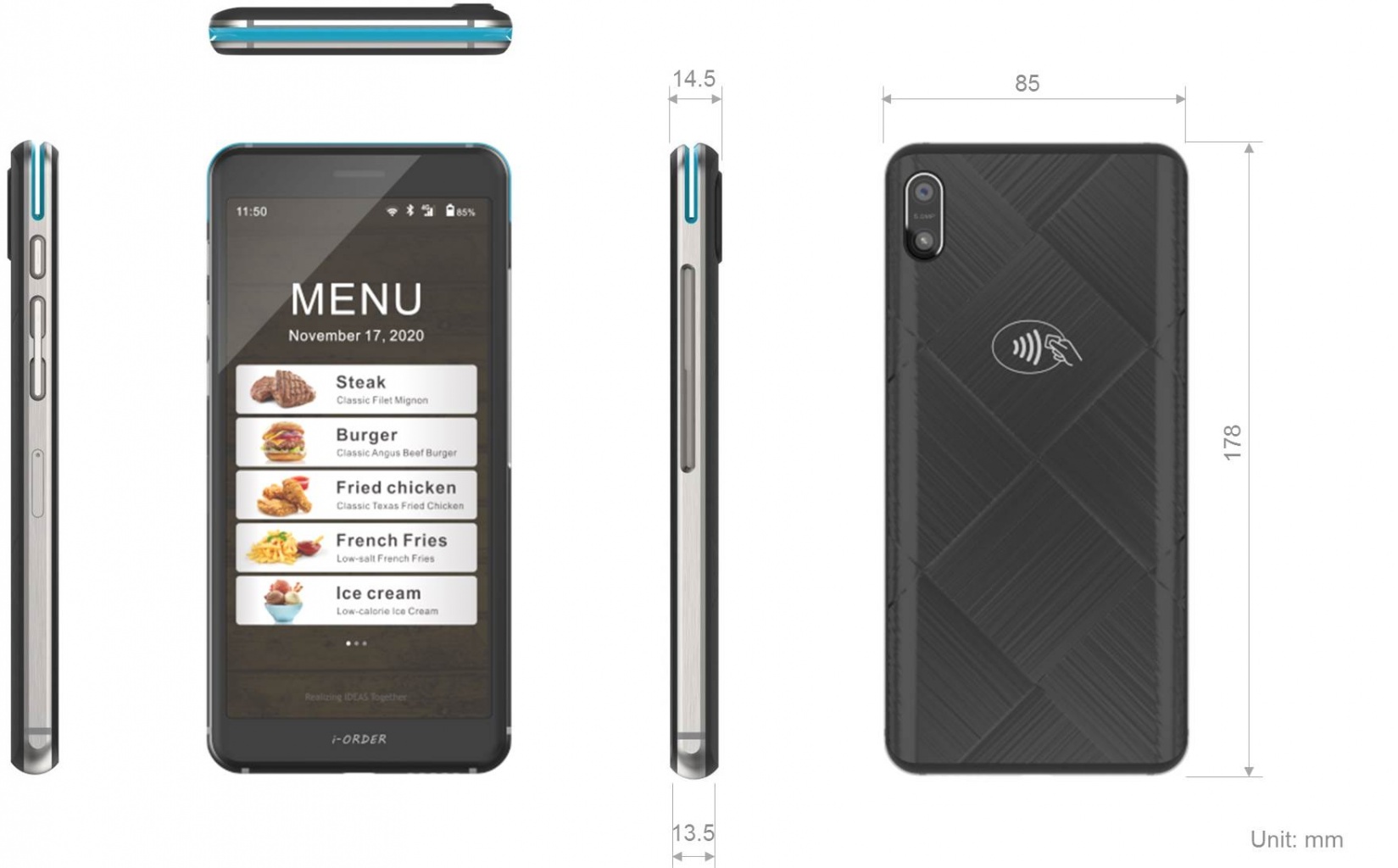 iOrder整合销售点功能和支付功能于一机,5,7吋触控屏幕提供用户较大较清晰的接口图标,搭配高通高效能芯片,支持无线热点,蓝牙与无线广域网,支持安卓9,0操作系统,可执行安卓版或云端版销售点软件与无线应用。内建整合支付功能则可支持磁条刷卡,EMV接触式与非接触式芯片卡交易,透过摄像镜头也可扫描二维码。 富有现代感的外观设计与最轻薄13mm机体,方便使用者一手掌握,在单机上有效率地完成销售与交易,进一步提升顾客满意度。 茄子视频免费观看。